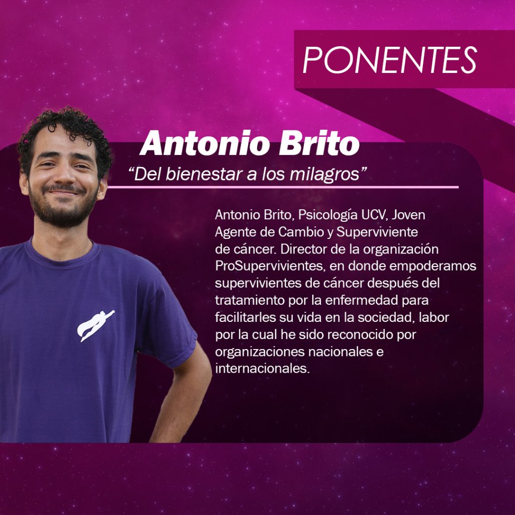 Estudiante de Psicología en la UCV, Joven Agente de Cambio y Superviviente de cáncer. Director de la organización ProSupervivientes, en donde empoderan supervivientes de cáncer después del tratamiento por la enfermedad para facilitarles su vida en la sociedad, labor por la cual ha sido reconocido por organizaciones nacionales e internacionales. Lema: «Haz la diferencia con tu experiencia».